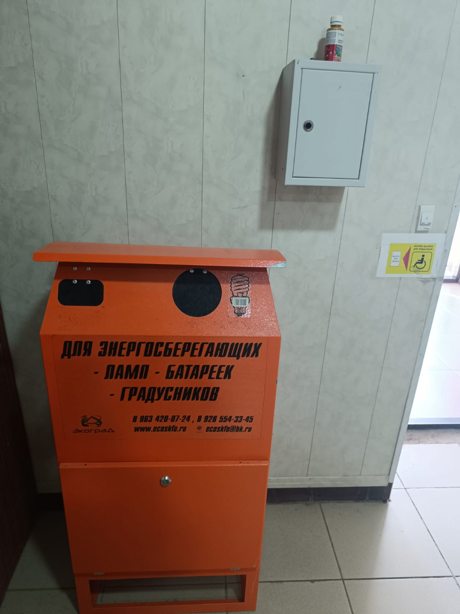 Ставим в известность что в административном здании сельского поселения по улице Мусаиба Стальского №4 установлен прибор Экобокса (контейнер для временного хранения ртутных ламп, ЛБ и ДРЛ).